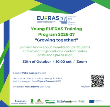 Join us at the upcoming EUFRAS COFFEE Break on the theme “Growing Together”, dedicated to the YOUNG EUFRAS Training Program 2026–27 and will have the opportunity to learn more about the initiative and its benefits.