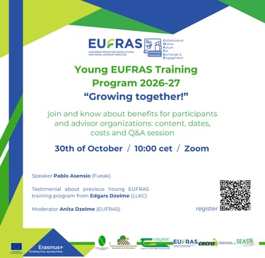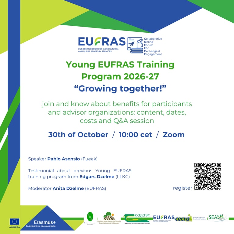 At the upcoming EUFRAS COFFEE Break event, taking place on October 30th and entitled “Growing Together”, you’ll have the opportunity to learn all about the YOUNG EUFRAS Training Program 2026–27.